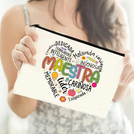 Spanish Print Cosmetic Bag Portable Zipper Pouches Large Capacity Travel Shower Makeup Bag Back to School Gift to Teacher