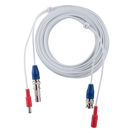 . BNC Video Power Wire Cord,100Ft,White, Wire for Security Camera, CCTV, DVR, Plug & Play